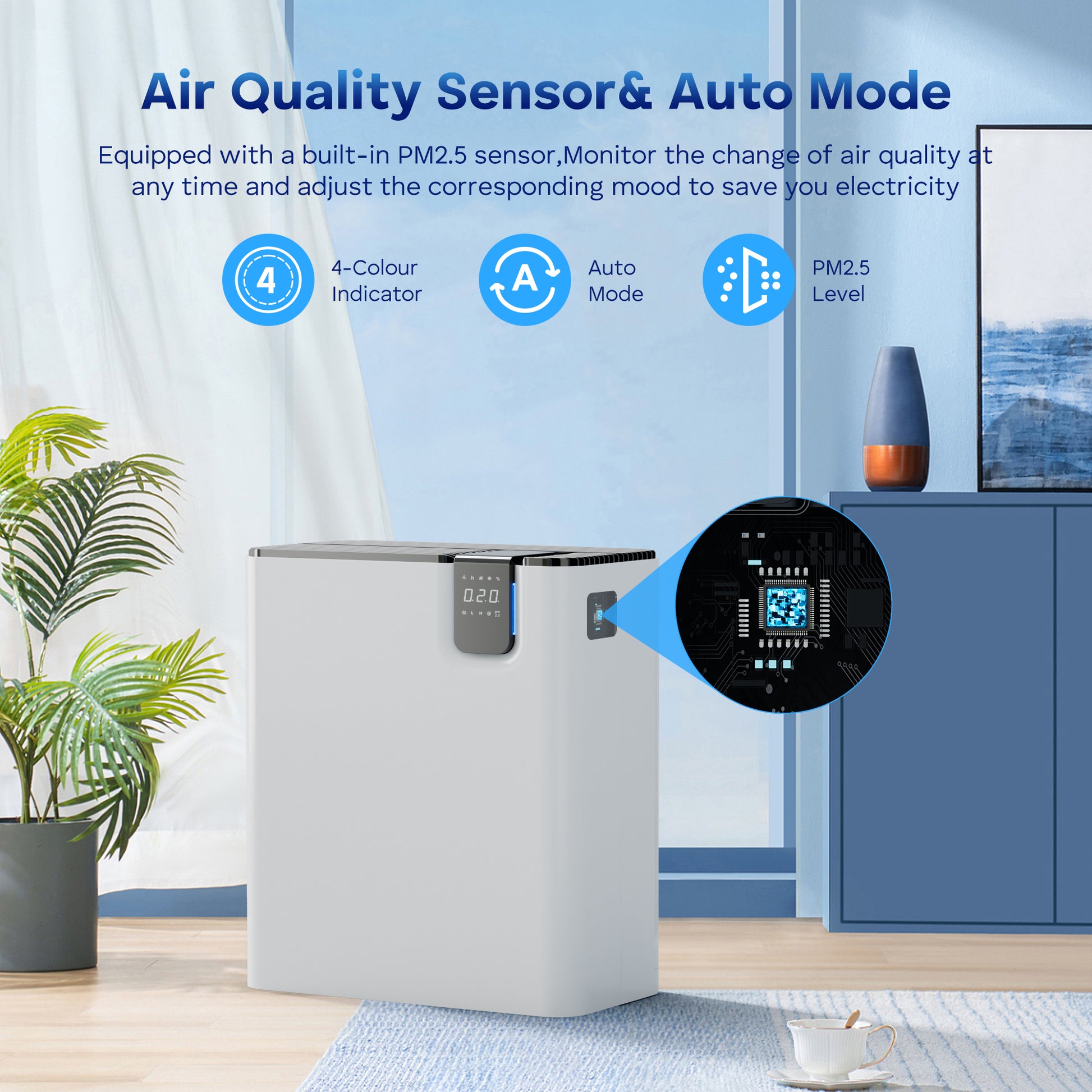 Kloudic Air Purifier for Home Large Room up to 1590 Sq.ft,with Air Quality Sensor,Auto Mode,Efficient HEPA Air Purifiers Filter 99.97% of Pollen Allergies Smoke Dust Reducer